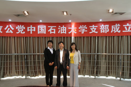 支部新当选主委、副主委合影(左起依次为郑秋梅、王爱东、戴彩丽)