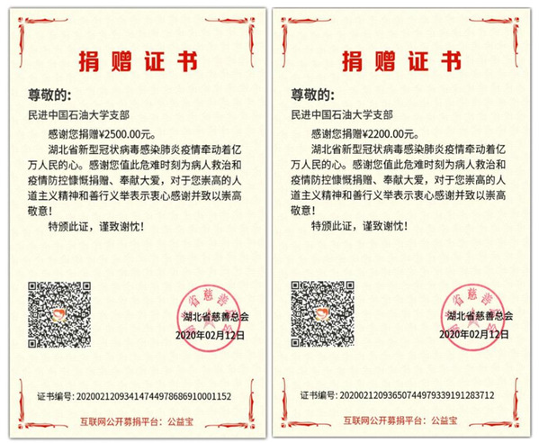 疫情发生以后,学校民革支部、民进支部、九三学社等党派基层组织通过多种形式向湖北捐款,截止目前,捐款数额累计16700元,其他党派基层组织和统战团体的捐款行动后续仍在进行中。校九三学社委员会还通过上级组织向地方政府提交建言献策3条。