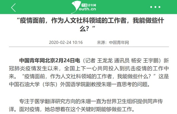 统一战线成员还结合各自专业,立足本职,力所能及地为抗击疫情出一份力。校欧美同学会理事、外国语学院副教授朱珊向中国翻译协会主动请缨,承担《新型冠状病毒肺炎预防手册》一书的翻译工作,负责审校、终审及定稿工作。据悉,《新型冠状病毒肺炎预防手册》英文版已收到来自俄罗斯、西班牙、德国、新加坡、菲律宾、泰国、印度尼西亚等国家和地区的多家出版机构的出版合作意向。