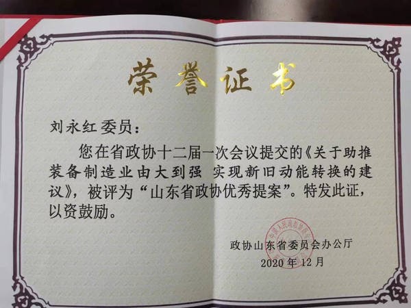 近日,从山东省政协办公厅获悉,我校省政协委员、党外知联会会长、机电工程学院院长刘永红教授撰写的《关于助推装备制造业由大到强 实现新旧动能转化的建议》,被评为“山东省优秀政协提案”。