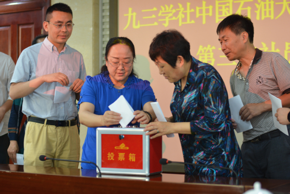 本次社员大会通过投票,选举产生了新一届委员会班子成员。山东省政协委员、校研究生院常务副院长阎子峰教授当选为主任委员,地球科学与技术学院王冠民教授、石油工程学院王宇赫教授当选为副主任委员,经济管理学院黄新颖副教授、材料科学与工程学院周炎副教授当选为委员。
