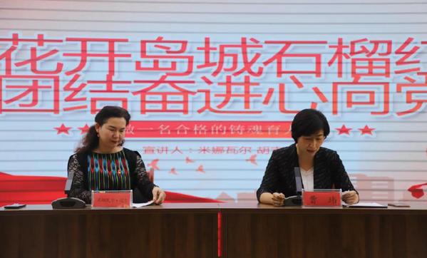 为认真贯彻中央民族工作会议精神,落实工委宣传部、统战部相关工作要求,扎实开展民族团结进步宣传月系列活动。9月28日,灵山卫街道邀请全国民族团结进步模范个人、全国辅导员年度人物、区政协委员、我校副处级辅导员米娜瓦尔·胡吉到星光岛社区开展“做一名合格的铸魂育人者”宣讲报告会。