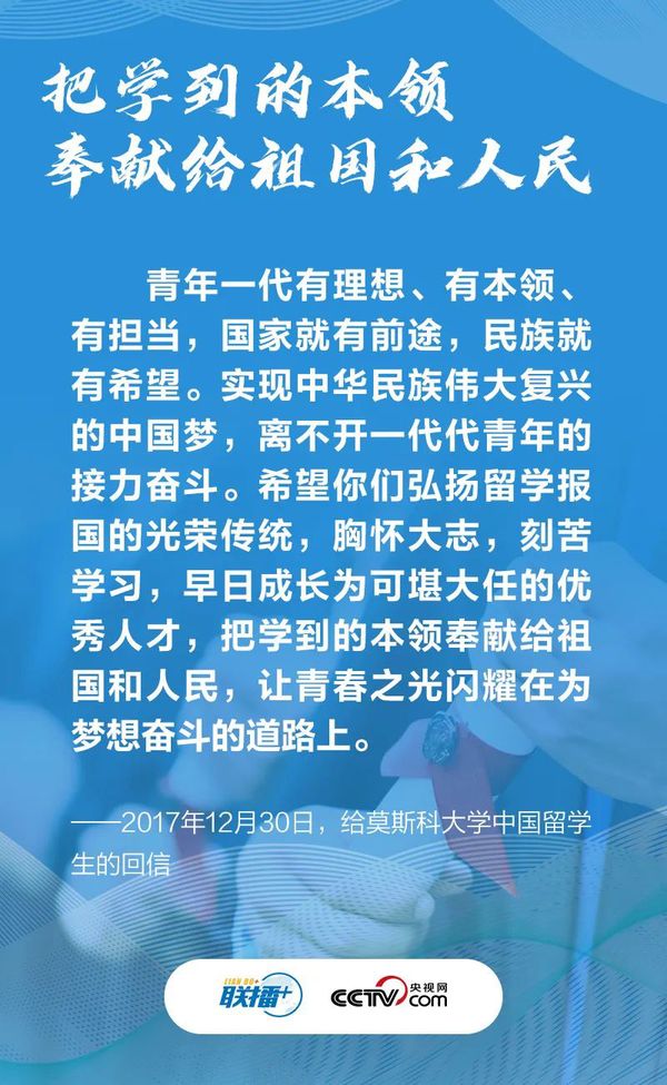 央视网《联播+》特梳理总书记对广大留学人员的谆谆寄语,与您一起学习。