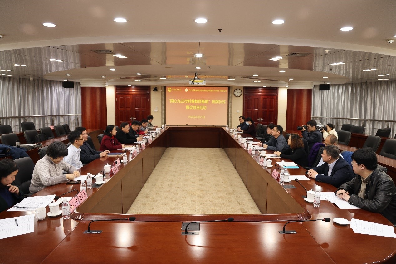 3月21日,九三学社青岛市委员会驻会副主委于鹏一行来校举办“同心九三行科普教育基地”揭牌仪式暨议政日活动。学校党委副书记万云波参加揭牌仪式并讲话,学校党委统战部部长吕宏凌主持活动。九三学社青岛市委员会秘书长王波、副秘书长刘宝霞、办公室主任刘春玉、参政议政处处长李兵校、科普工作专委会主任郎云鹏,九三学社青岛市委员会科普工作专委会成员,及九三学社威廉希尔中国官网(华东)委员会社员参加活动。
