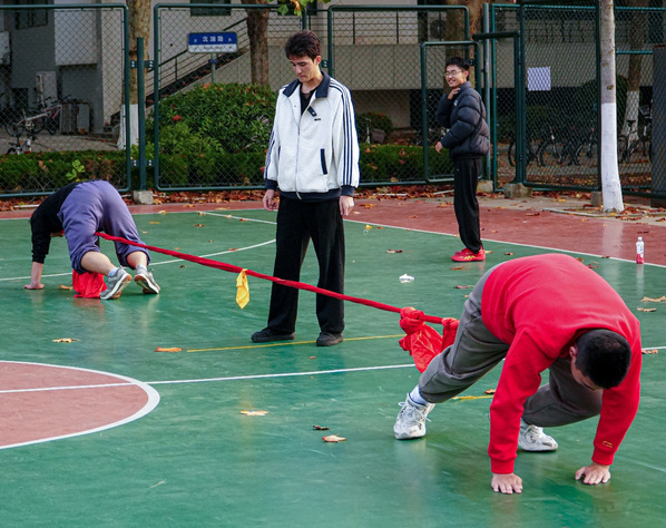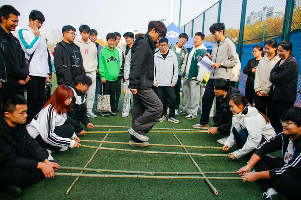 本次趣味运动会以学院为单位组建15支队伍,背篓绣球、竹竿舞、押加等6个团体项目轮番上演,让民族文化魅力与运动激情碰撞交融。最具民族风情的当属黎族、壮族传统项目竹竿舞。随着节奏明快的敲击声,各族同学从初时的小心翼翼试探,到熟练后在开合的竹竿间轻盈穿梭、灵活跳跃,清脆的笑声与阵阵喝彩将现场氛围推向顶峰。作为力量与耐力的硬核较量,押加项目中选手们紧握绳索咬牙发力,观众的加油声随赛况起伏,顽强拼搏的竞技精神感染全场。